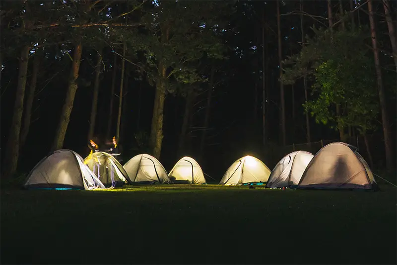 - nocleg w sześcioosobowym domku noclegowym z łazienką,