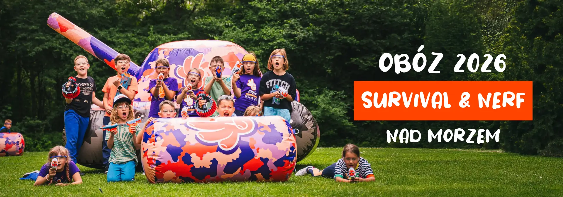 Gel blaster, paintball, nerfy czy ASG – jeśli Twoje dziecko zna te pojęcia, ten obóz to strzał w dziesiątkę! Aż 45 zajęć w programie!